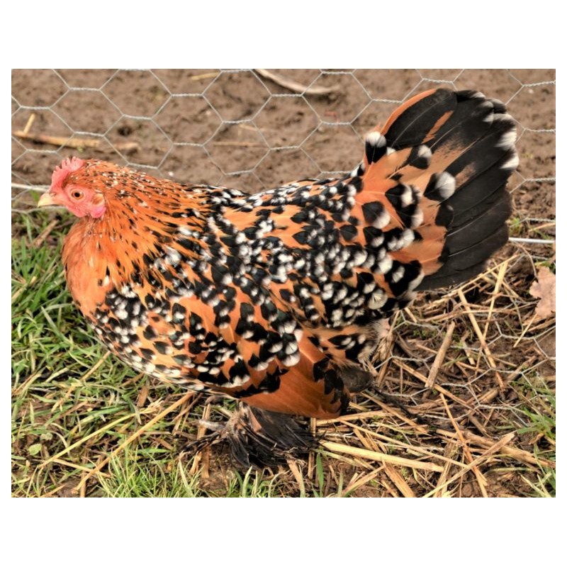 La poule Sabelpoot est une poule d’ornement très prisée. Dotée d’un joli plumage tacheté, elle est familière et douce. C’est une très bonne poule de compagnie, mais elle exige un environnement et des soins adaptés.